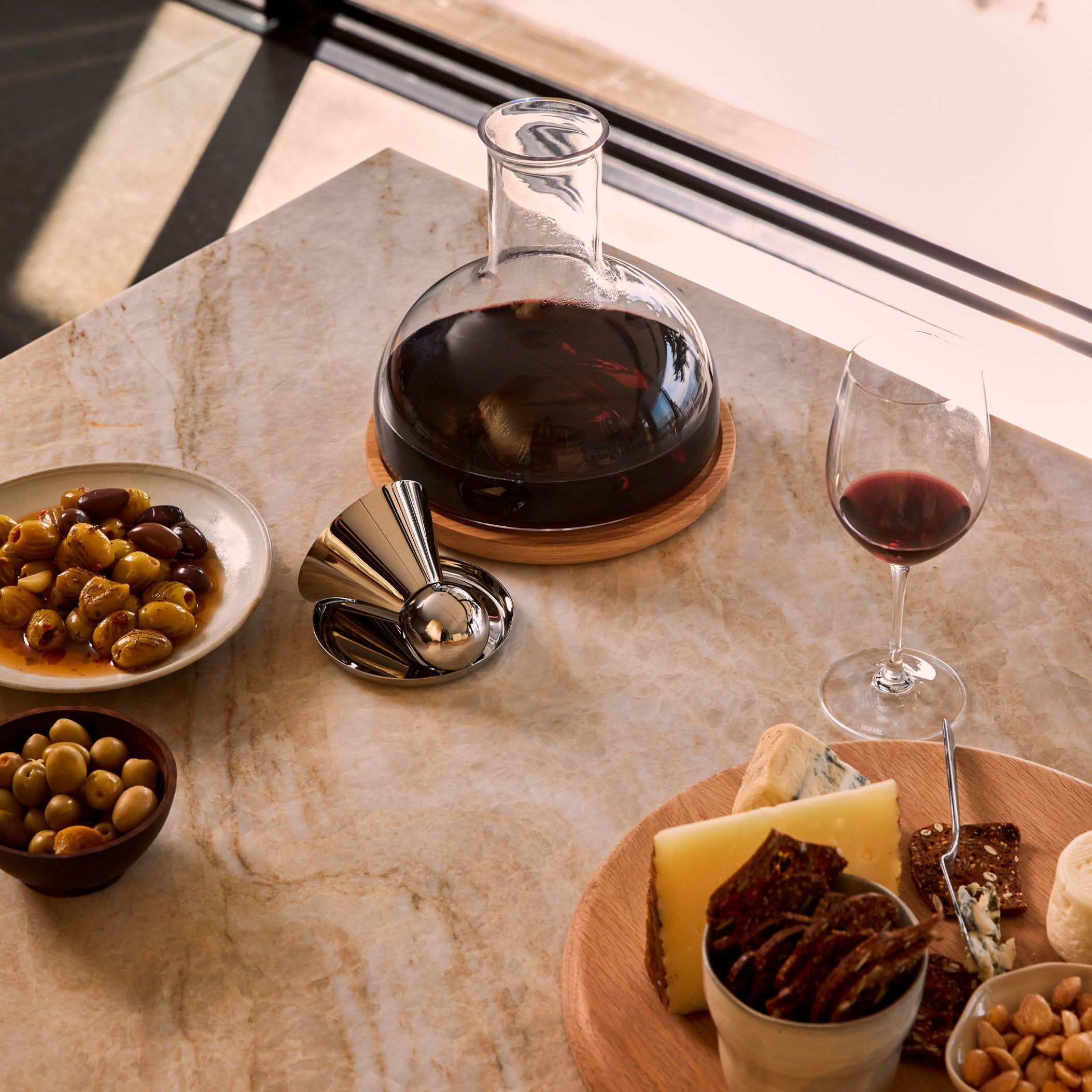Simple yet striking, the Puddle Coasters are crafted from heavyweight polished stainless steel to protect surfaces from condensation in style. A shallow lip catches drips while the anti-slip pad keeps things steady and quiet. When stacked, their slim profile tucks neatly into any space. Sized to fit everything from a cocktail glass to a wine bottle or Holcomb’s Teeter Carafe.